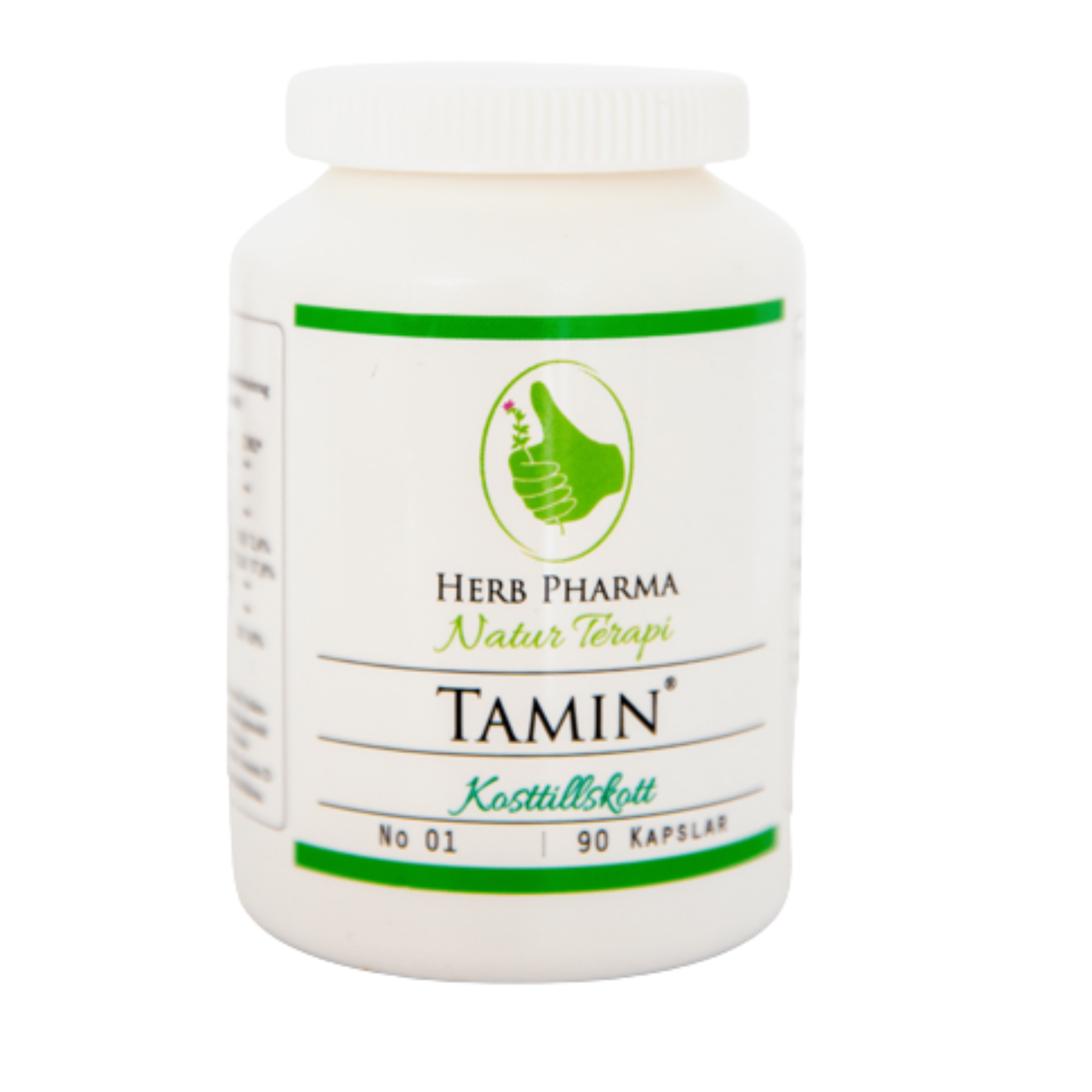 Varje burk tamin som är ett kosttillskott, innehåller 90 kapslar.