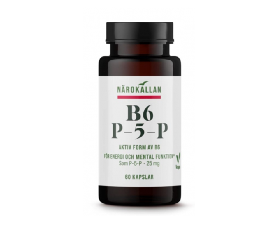 Närokällan B6-vitamin. 60 kapslar. P5P är den aktiva formen av B6. För energi och mental funktion.